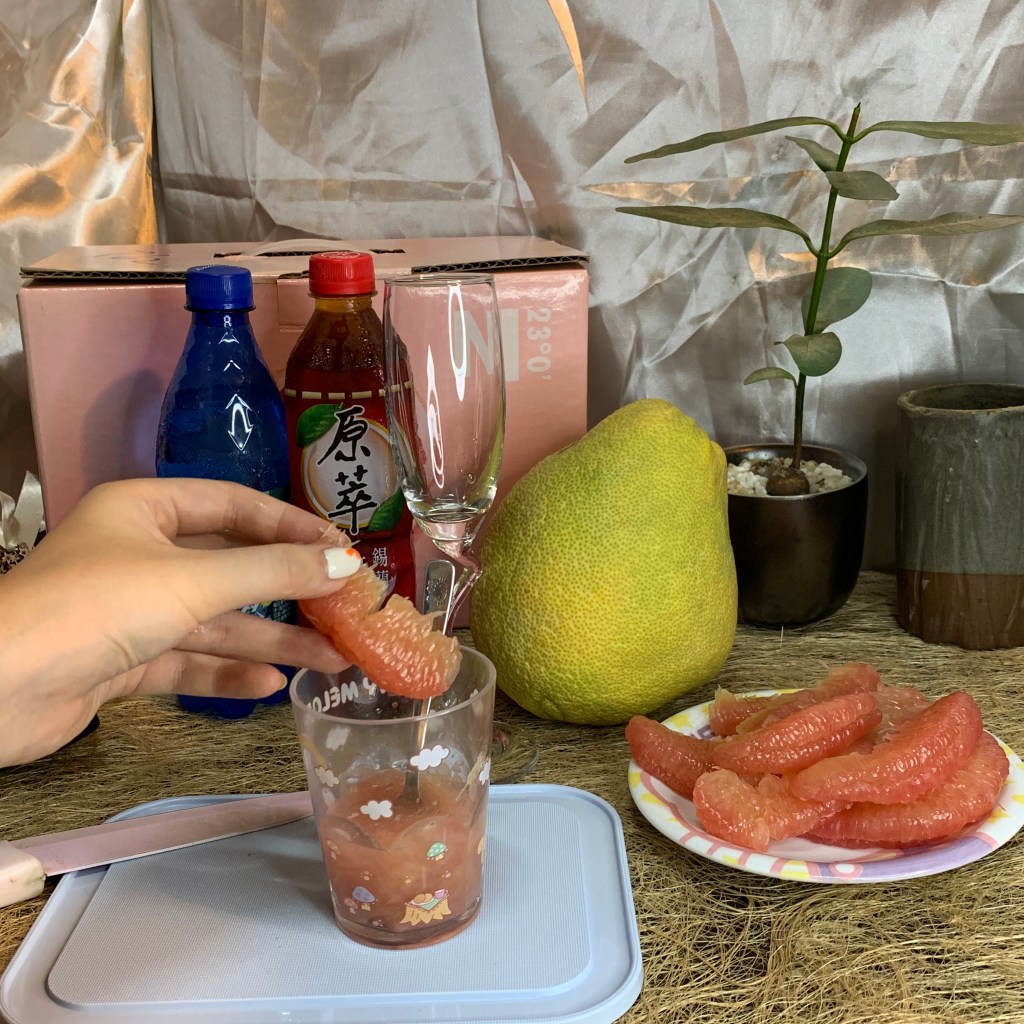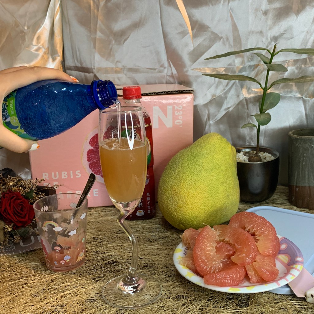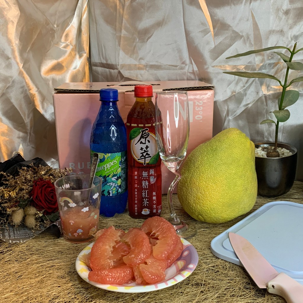 嘗試幾口庄稼狼的麻豆老欉文旦紅柚,覺得他的果肉跟口感很適合拿來做成飲料,於是我準備了紅茶、檸檬汁少許、紅柚三瓣、氣泡水,要來做夏日紅柚飲!