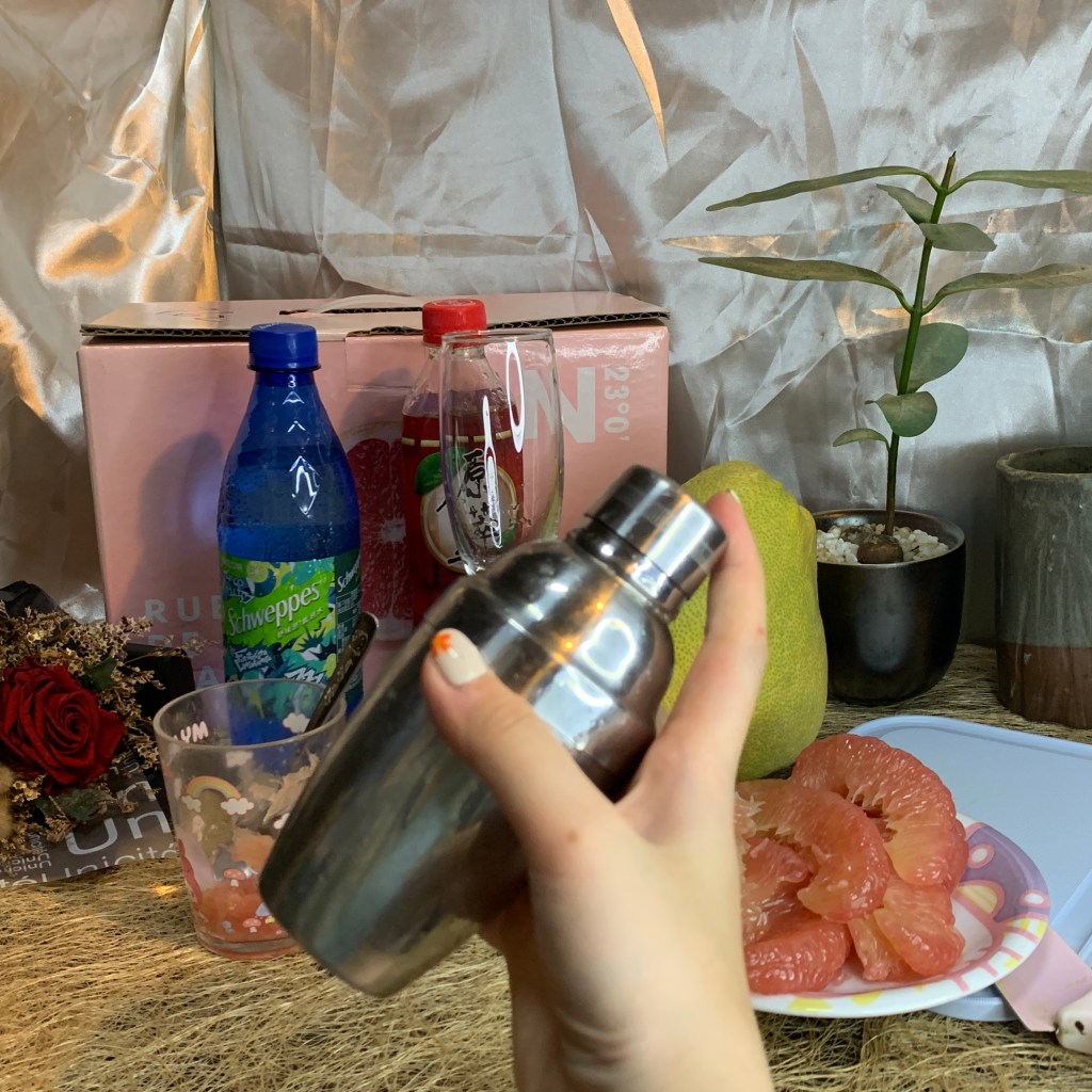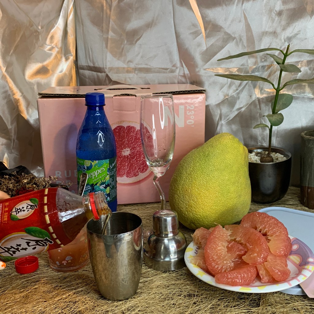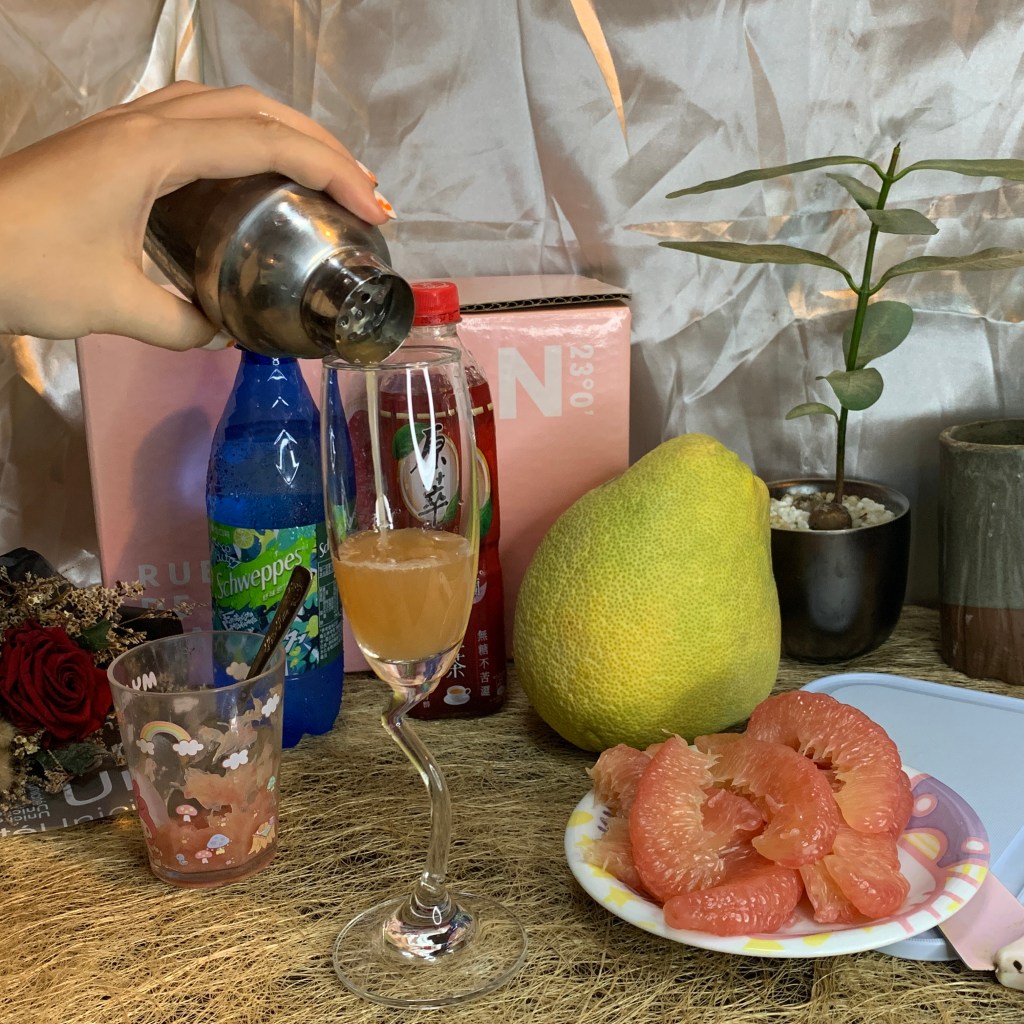 嘗試幾口庄稼狼的麻豆老欉文旦紅柚,覺得他的果肉跟口感很適合拿來做成飲料,於是我準備了紅茶、檸檬汁少許、紅柚三瓣、氣泡水,要來做夏日紅柚飲!