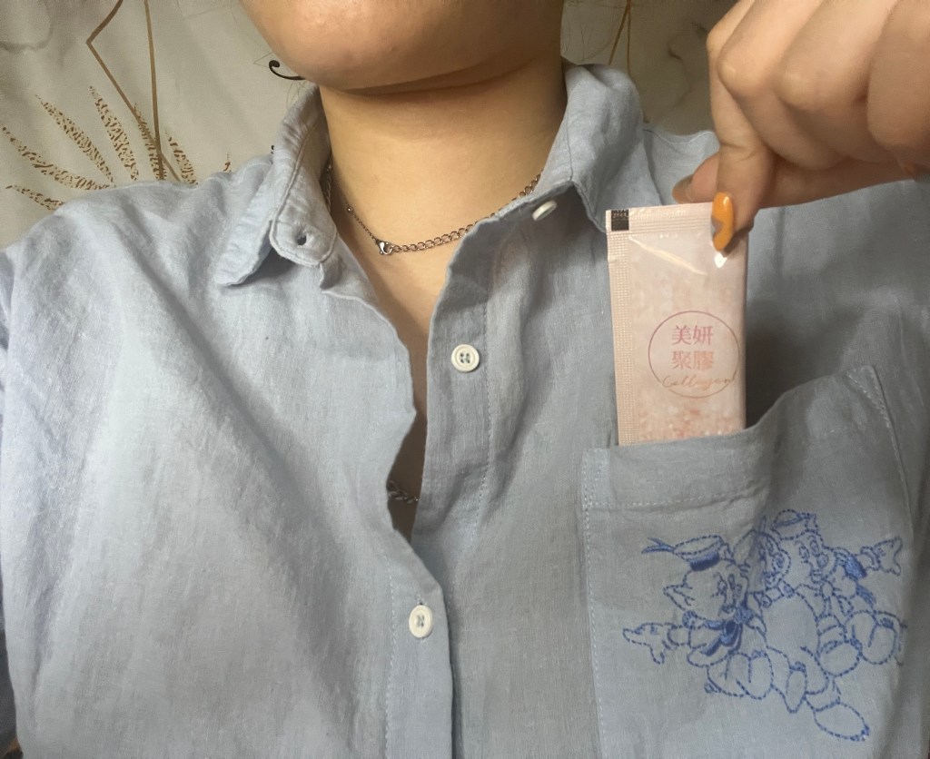 一天可以吃兩次,每次一包,直接吞食味道也很可以接受,如果真的會擔心,也可以配水食用唷!這膠原蛋白粉是連孕婦都可以吃,不過如果對魚類過敏就要小心一點